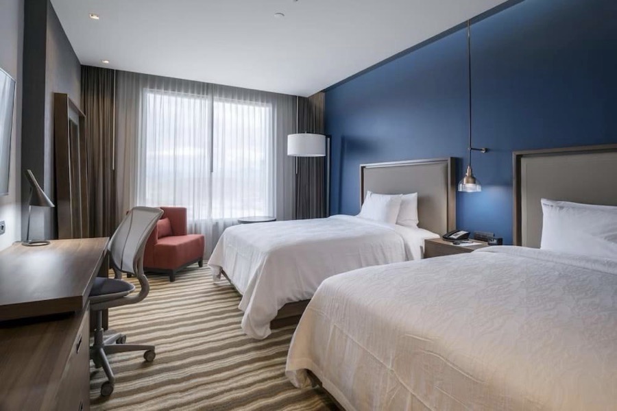 Televisor de 55 in, escritorio, silla ergonómica, refrigerador pequeño, WiFi de cortesía Descanse en esta elegante habitación con cama Queen. Disfrute de una buena noche de descanso en la cama Suite Dreams® de Serta, que ofrece el equilibrio perfecto entre comodidad y soporte. Trabaje en la comodidad del escritorio con silla ergonómica. Vea un programa en el televisor de alta definición de 55 in con televisión digital o navegue por la Web con WiFi de cortesía. Esta habitación también cuenta con un refrigerador pequeño, aire acondicionado regulable, cafetera y tetera, plancha y tabla de planchar, que lo harán sentirse como en casa.
