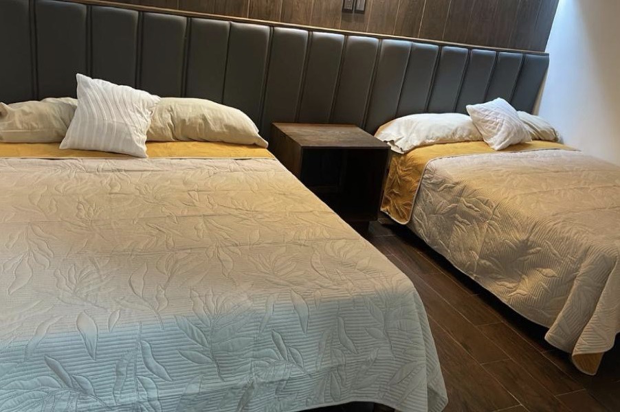 Es una amplia habitación con dos camas matrimoniales y capacidad de 2 adultos y 2 niños o un máximo de 4 adultos. Sus servicios incluyen aire acondicionado, televisión, acceso a internet y baño privado con amenidades.